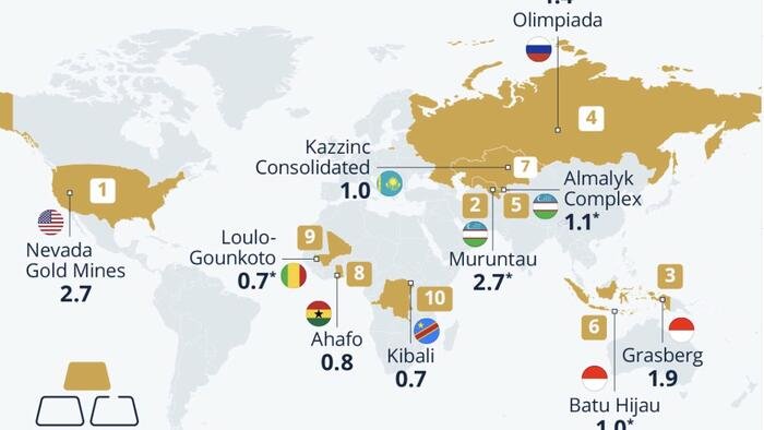The Olimpiada mine in Russia, discovered in 1975, follows closely with a production of 1.44 million ounces (or 40 tons) in 2024. This mine exemplifies how older sites continue to play a crucial role in meeting global gold demand, despite concerns over resource depletion.